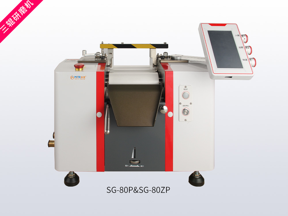 高精密三辊研磨机主要用于各种油漆、油墨、颜料、塑料、食品等膏状浆料的研磨,该机水平的三根陶瓷辊筒表面互相挤压及不同转向和速度差产生的剪切力而达到研磨与分散效果。